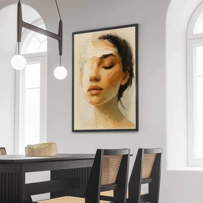Bring sophistication and modern elegance to your walls with this Abstract Woman Portrait Wall Art – a contemporary oil painting style design created with bold palette knife textures and neutral tones. This striking piece captures the serene beauty of a woman’s face, partially abstracted for a dreamlike, modern effect. The textured brush strokes and warm earthy palette make it versatile for living rooms, bedrooms, studios, or minimalist gallery walls, blending seamlessly with modern, boho, and Scandinavian decor styles.