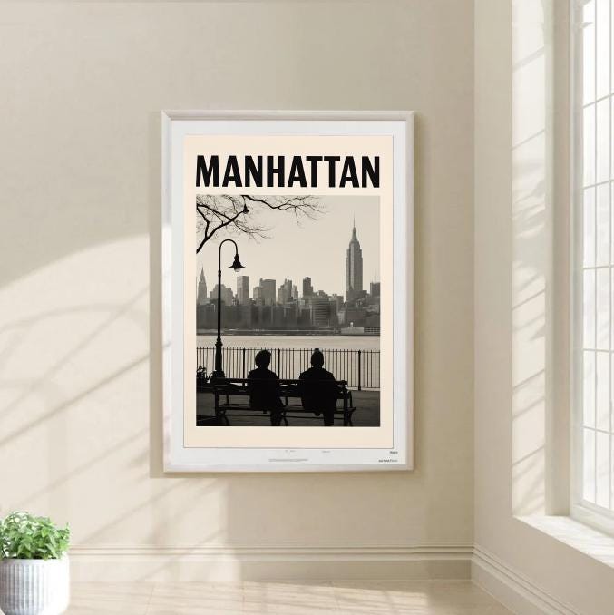 Manhattan Wall Art - Capture the timeless beauty of Manhattan with this elegant black and white wall art print, featuring the Empire State Building and the iconic New York City skyline, framed in a cinematic perspective. Ideal for NYC lovers, modern home decorators, and photography enthusiasts, this piece blends urban sophistication with minimalist style. The monochrome tones highlight New York’s architectural grandeur, making it a versatile artwork for any space.