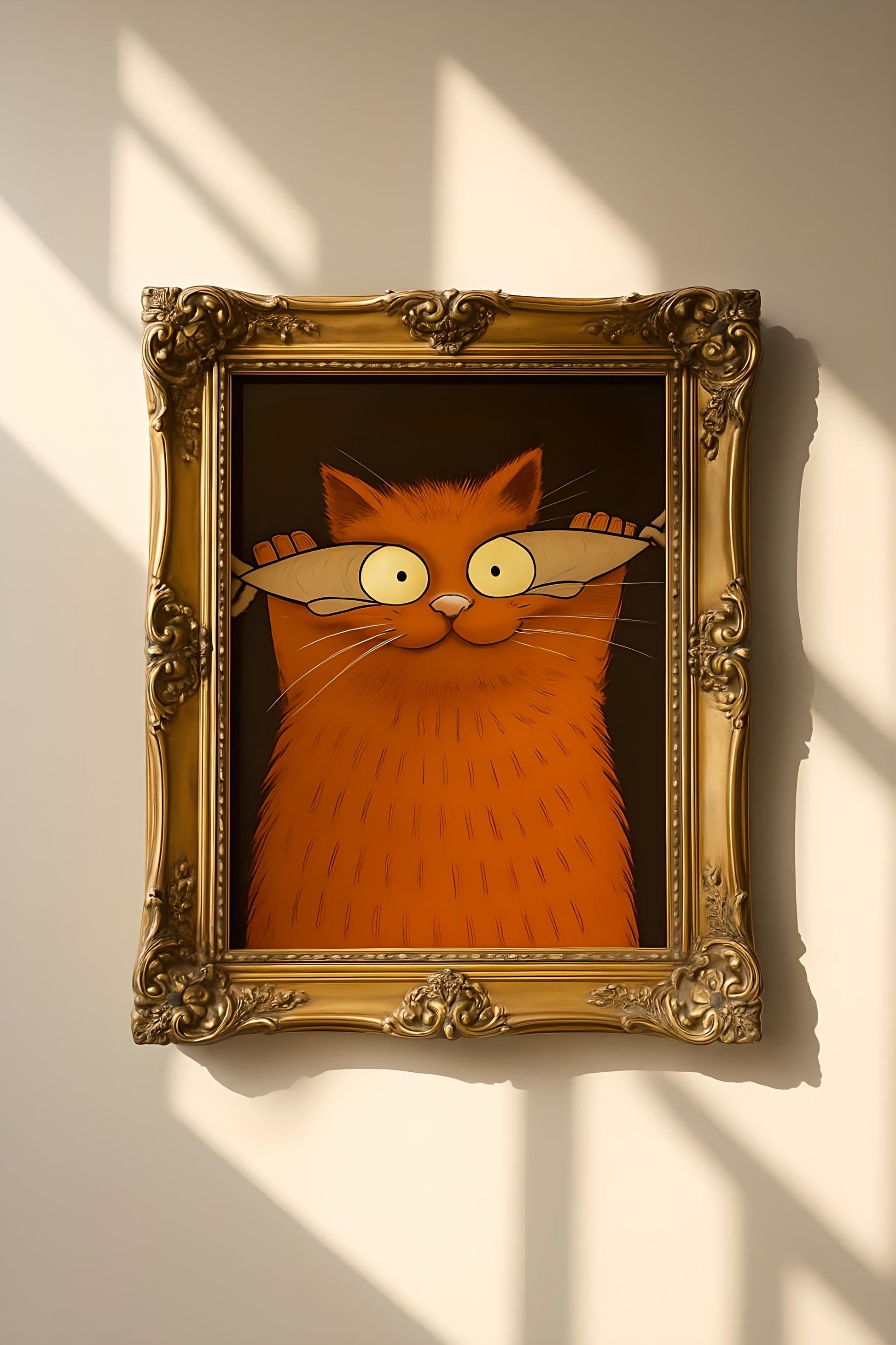 Funny Orange Cat Print: Whimsical Fish Eyes Cartoon (Digital Download)