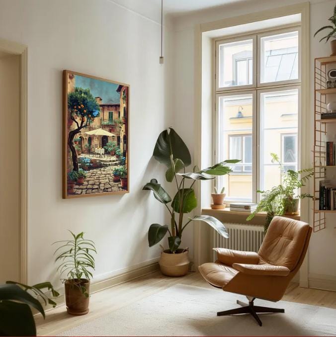 Italian Village Courtyard Print: Rustic Mediterranean Wall Art (Digital Download