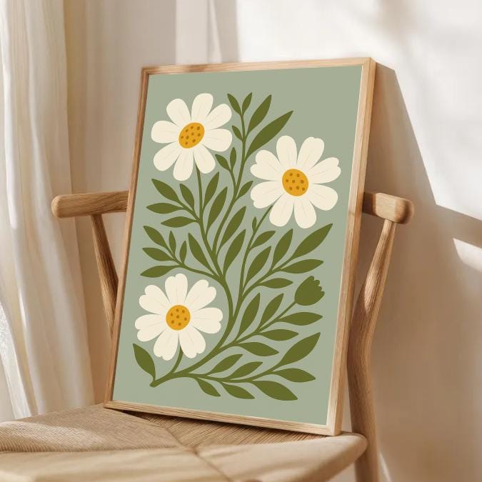 Whether you’re refreshing your home, curating a gallery wall, or searching for the perfect gift for a flower or plant lover, this daisy print adds timeless beauty and charm. It’s an instant digital download, ready to print and frame in your preferred size.
