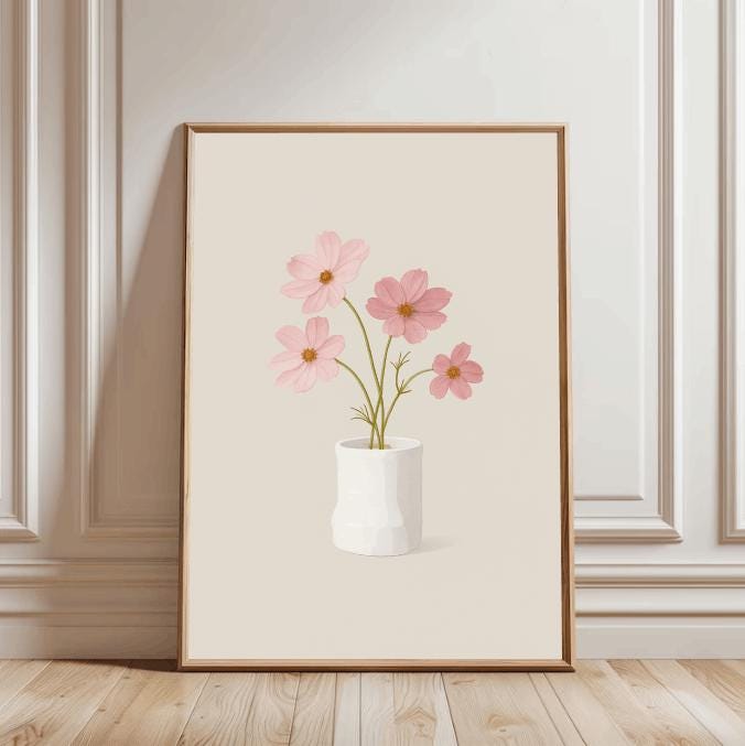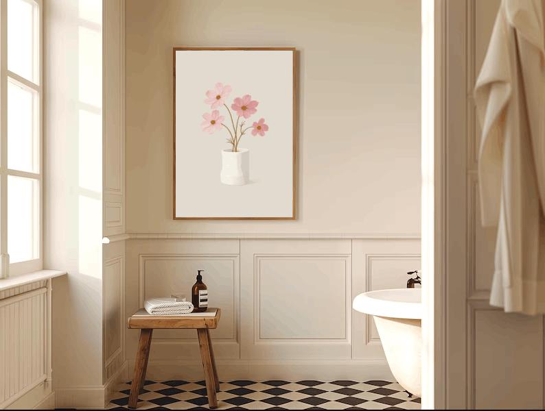 Minimalist Flower Wall Art - Brighten your space with this elegant Minimalist Flower Wall Art. Featuring delicate pink blooms in a simple white vase, this artwork blends modern design with timeless botanical beauty. Perfect for living rooms, bedrooms, offices, nurseries, or gallery walls, this botanical print adds a calming touch of nature and soft color to any interior. Its minimalist aesthetic pairs beautifully with Scandinavian, modern, boho, and farmhouse décor styles.