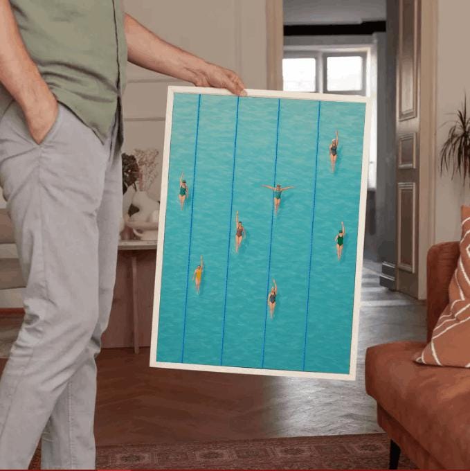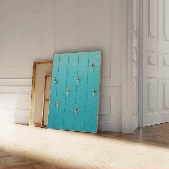 Perfect for a living room, bedroom, bathroom, or sports-themed space, this print appeals to swimmers, athletes, and anyone who loves the atmosphere of summer by the pool. It also makes a thoughtful gift for swim enthusiasts, coaches, or contemporary art lovers who appreciate clean, stylish design.