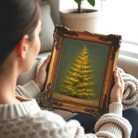 Vintage Christmas Tree Print - Bring warmth and nostalgia to your home this holiday season with this vintage-inspired Christmas tree wall art. Perfectly capturing the cozy glow of twinkling lights, this piece transforms any room into a festive wonderland. Designed for art lovers who adore timeless holiday charm, this print adds a touch of soft vintage texture and peaceful ambiance. The subtle brushwork and muted background blend beautifully with neutral interiors, modern farmhouse styles, and Scandinavian décor.